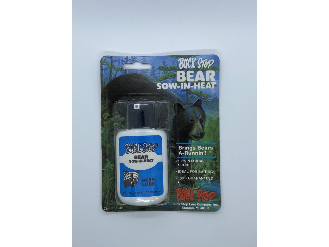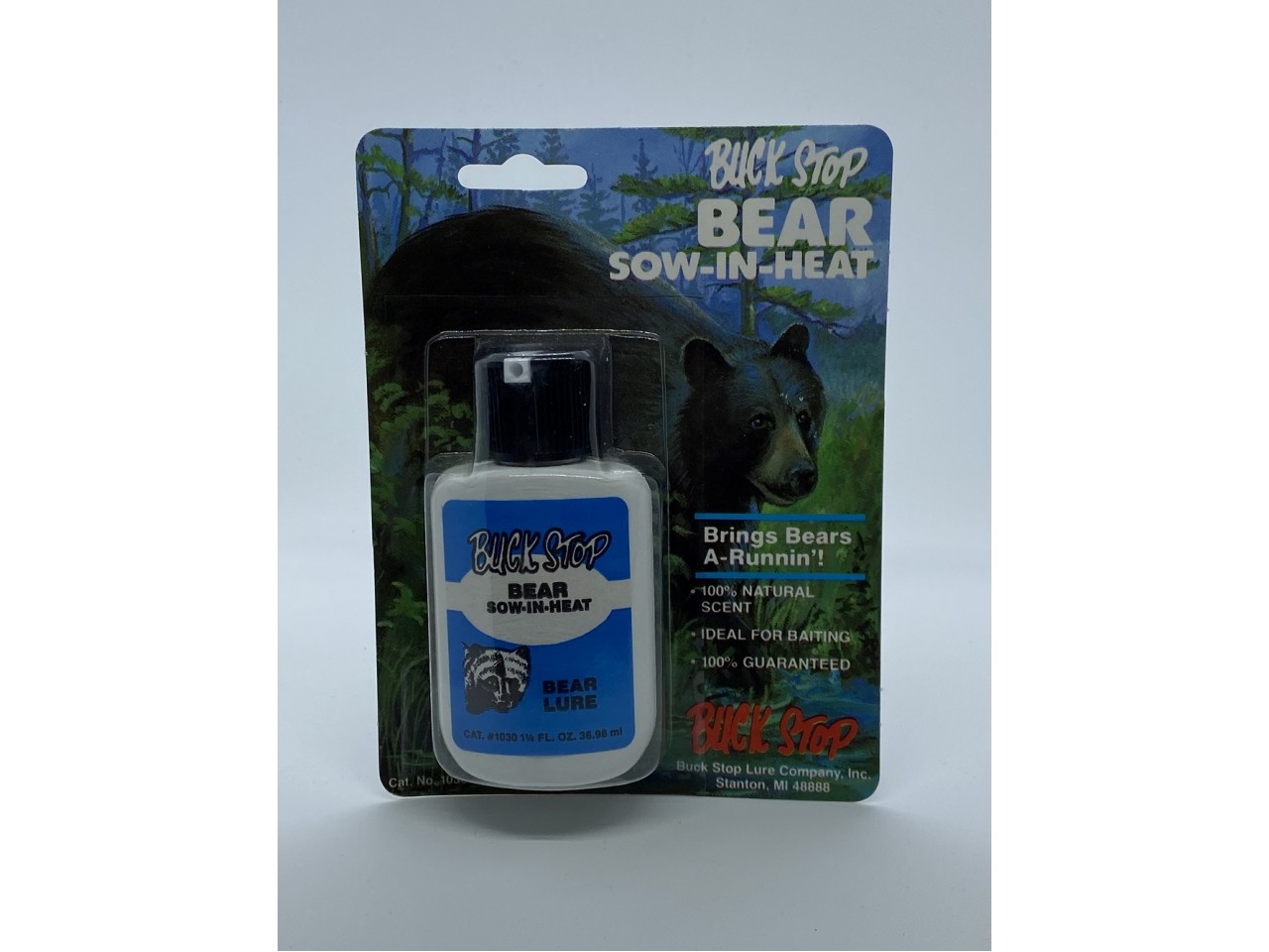 Bear Sow-In-Heat is a powerful estrus urine scent. Effective both in spring and fall bear hunts. Apply to scent pad near bait site where it can seen from your stand. CAUTION Never apply directly to yourself or stand.
