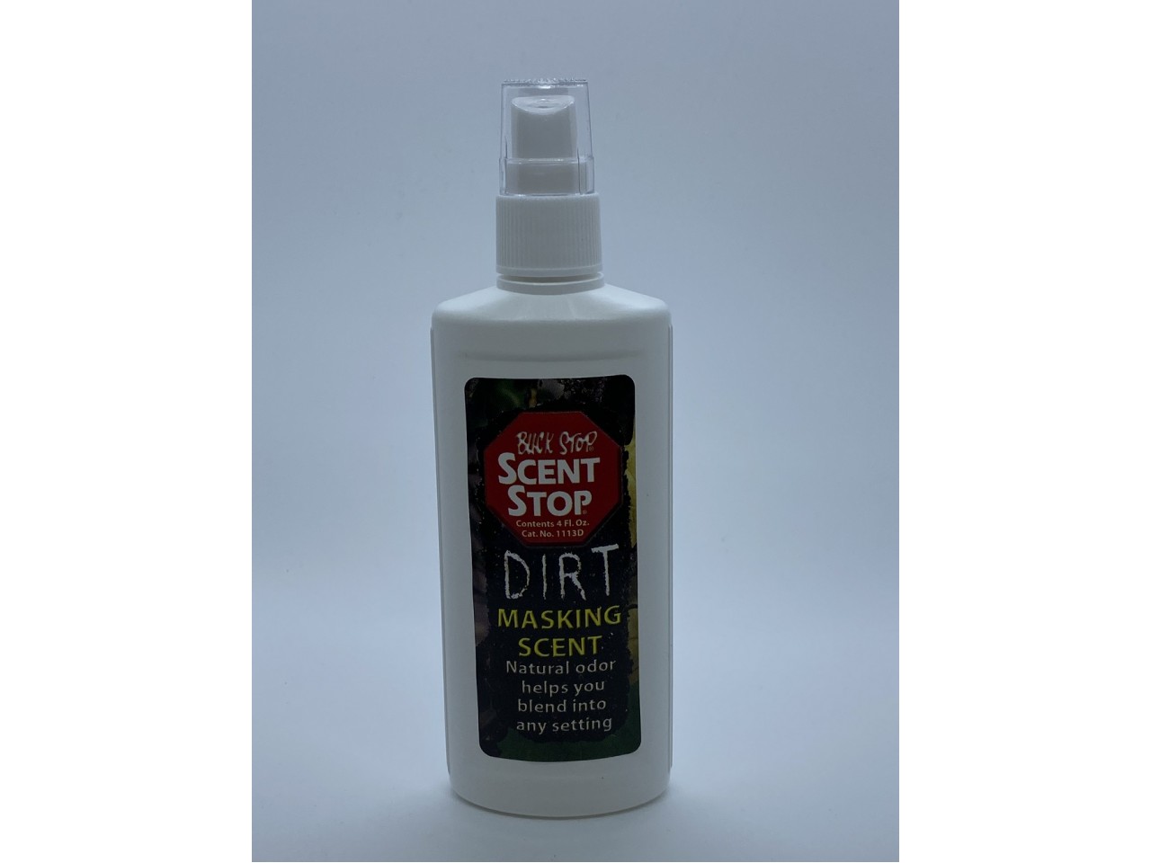 Water based DIRT scented masking scent 4 oz apply to clothes or around stand. 4 oz spray pump bottle