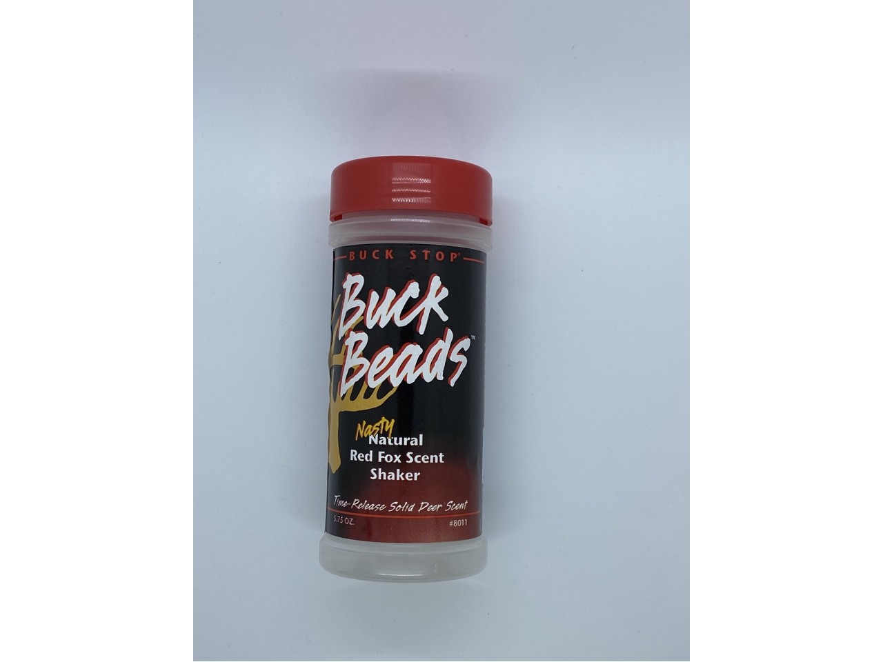 5 3/4oz shaker container. Red Fox Urine mositure activated time released beads contains 3 oz of fox urine, lasts for 7 or more days. Apply around stand site for masking of unwanted human scent