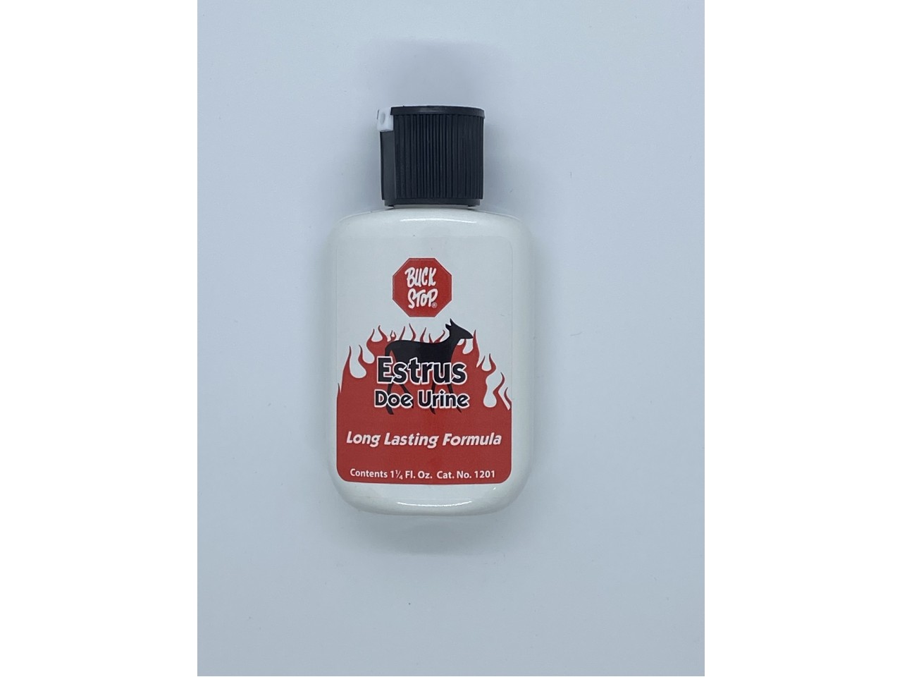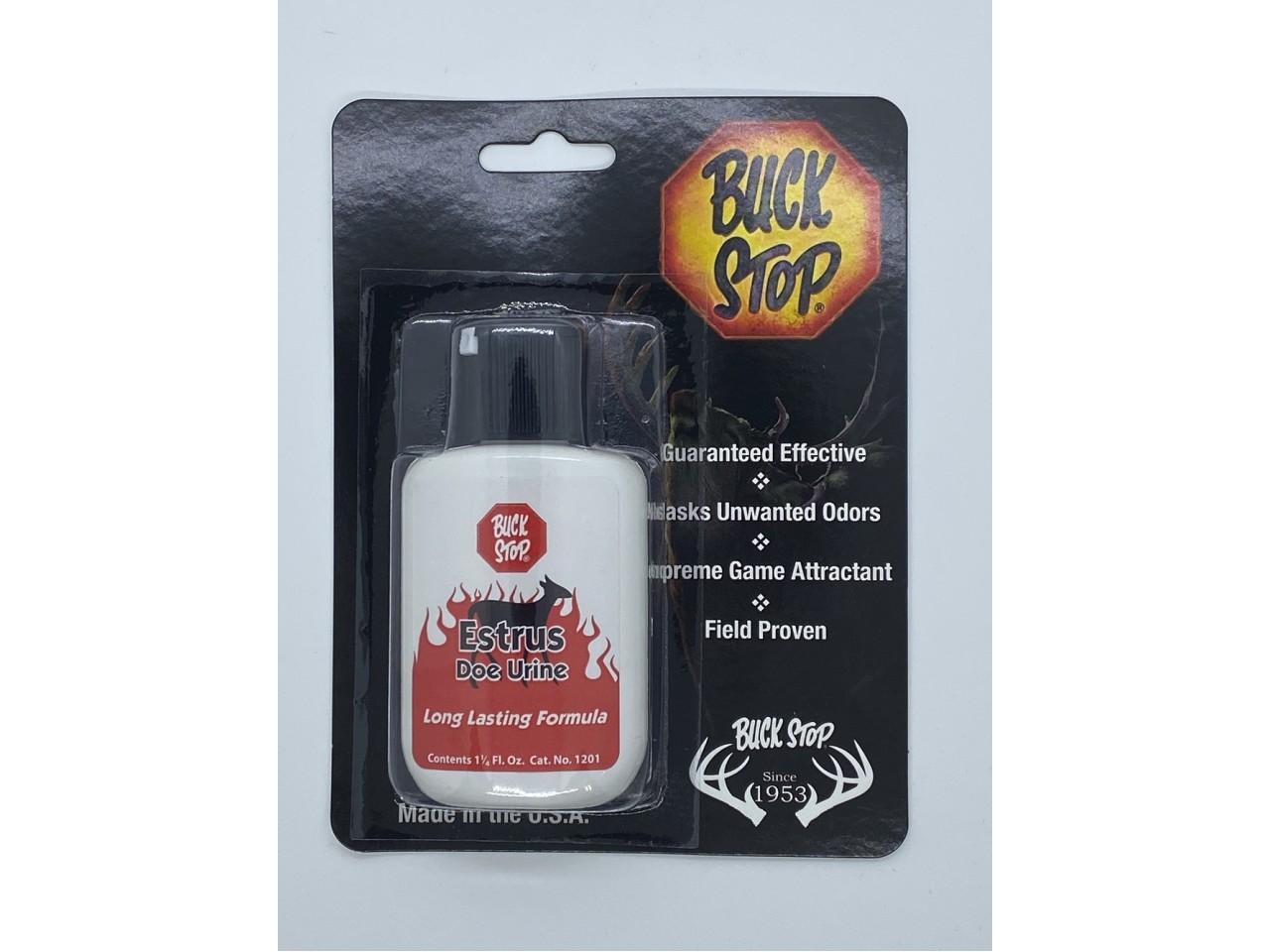 Buck Stop combines Estrus doe urine with a special binding agent to create a long lasting formula that last for hours. Can be used on scents pads. Use during the pre-rut and breed phases of the rut. Apply in several locations near hunting stand.