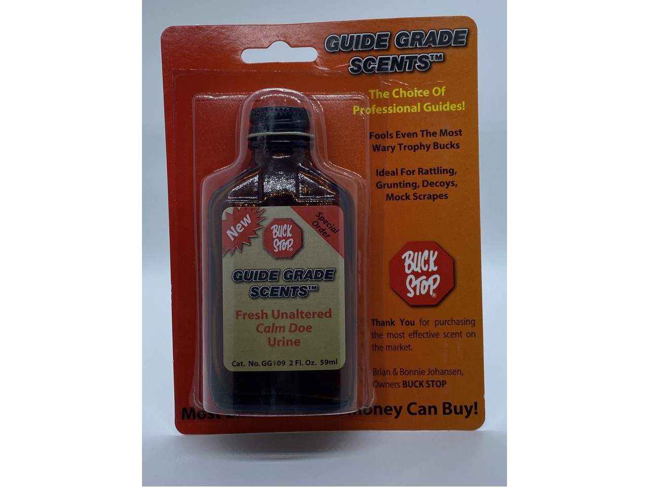 For 2010 Buck Stop introduces the newest SUPER PREMIUM scents. GUIDE GRADE SCENTS. Buck Stops state of the art collection facility now has the ability to capture these special urines. Special care and handling is used in the collection to ensure the freshness and purity of these highly prized scents. Mother nature limits the amount of availability so these are strictly a SPECIAL ORDER product.