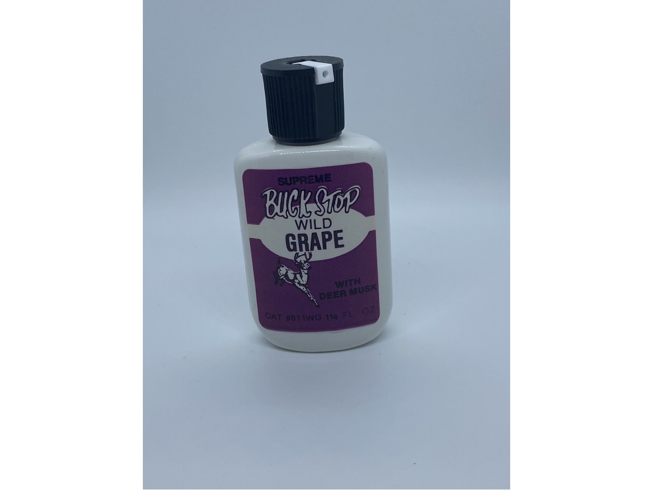 1 1/4 oz. plastic bottle with easy to use flip top applicator. This is candy for the deer. Deer flock to wild grapes after the first frost. For best results apply near hunting site. A great curiosity scent all season, even where there are no grapes.